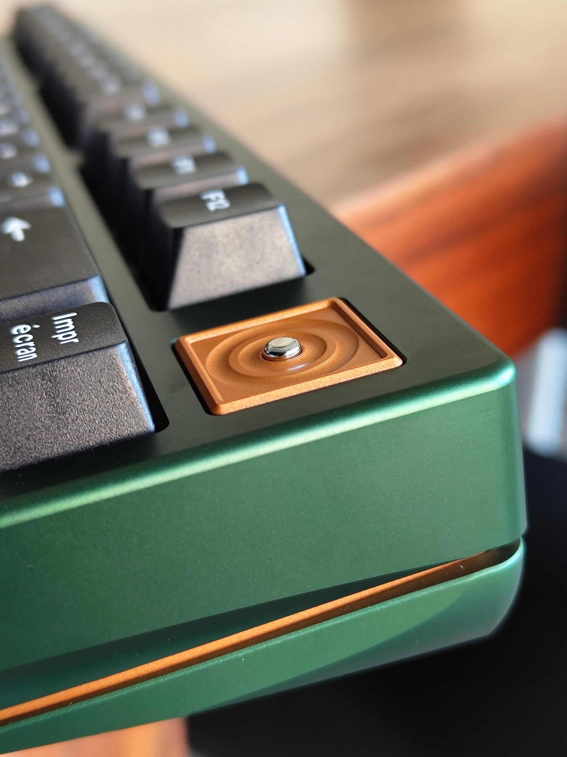 A unique blend of elegance and quality. This Neo75 pairs a green aluminum case with a full-copper bottom for added heft and a warm sound signature. Finished with black AZERTY keycaps, it’s a rare configuration that brings premium design and a touch of practicality to the forefront.